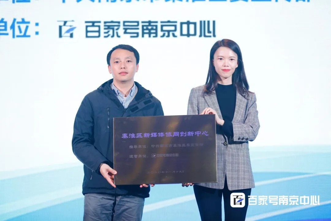 授牌儀式上,秦淮區(qū)委網(wǎng)信辦專職副主任祝鯤鵬向百家號(hào)南京中心授予“秦淮區(qū)新媒體協(xié)同創(chuàng)新中心”稱號(hào)。秦淮區(qū)宣傳部將攜手百家號(hào)南京中心共同為南京的內(nèi)容創(chuàng)作者持續(xù)提供優(yōu)質(zhì)的平臺(tái)和資源,打造自媒體孵化基地,推動(dòng)南京內(nèi)容生態(tài)的發(fā)展。