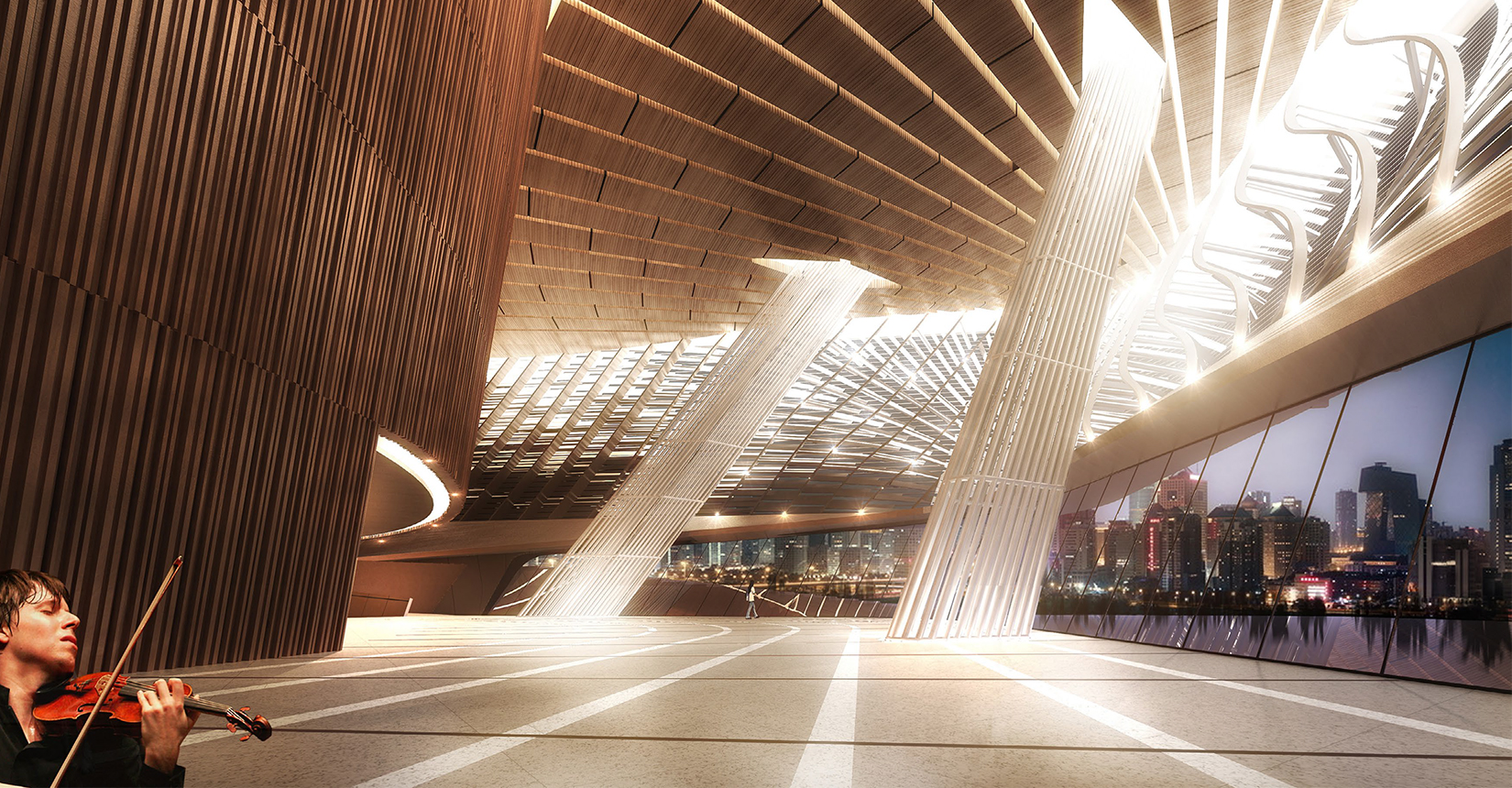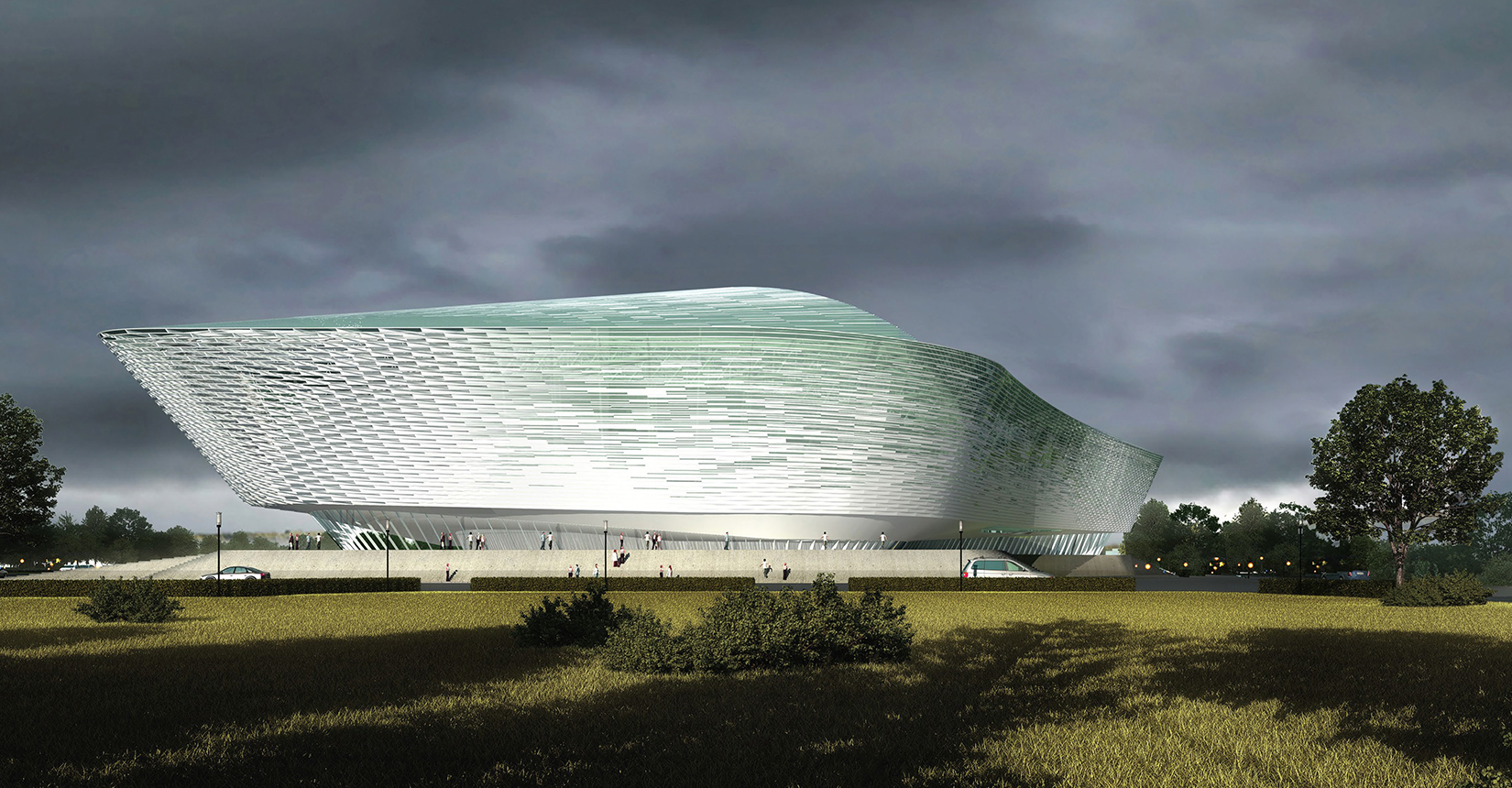 中國傳統(tǒng)文化“天人合一”的自然觀與社會觀,以“山、水”的自然美來再現(xiàn)“智者樂山、仁者樂水”的儒家美學(xué)觀。建筑設(shè)計中將中軸景觀河畔景觀設(shè)計與建筑設(shè)計相融合,以此與整個大學(xué)城的城市景觀相融合,達(dá)到建筑與景觀一體化設(shè)計的結(jié)果,提高了整個園區(qū)的品質(zhì)與園區(qū)文化。