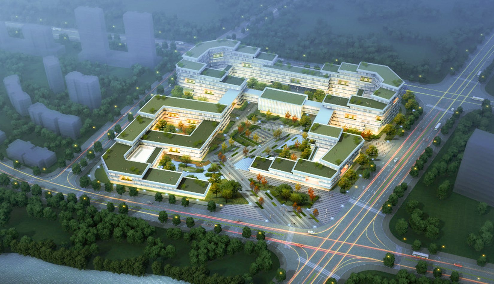 設計大、中、小三種空間尺度的景觀庭院,通過底層架空,使各空間既相互獨立,又互相滲透。增大建筑與景觀的接觸面,打造園林式辦公環(huán)境。