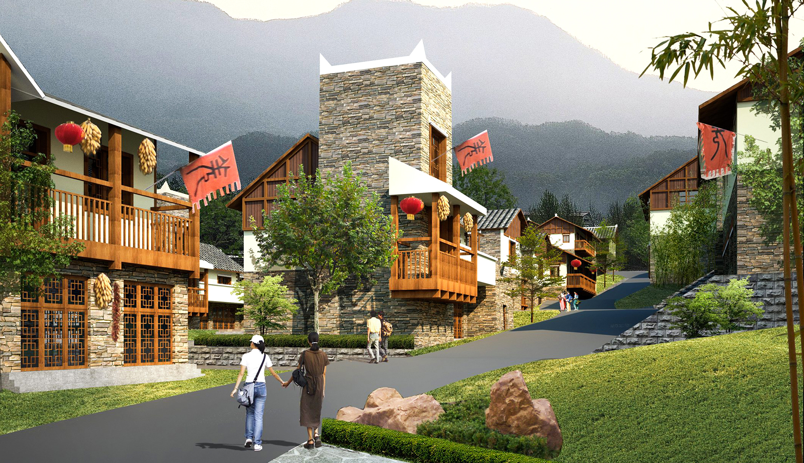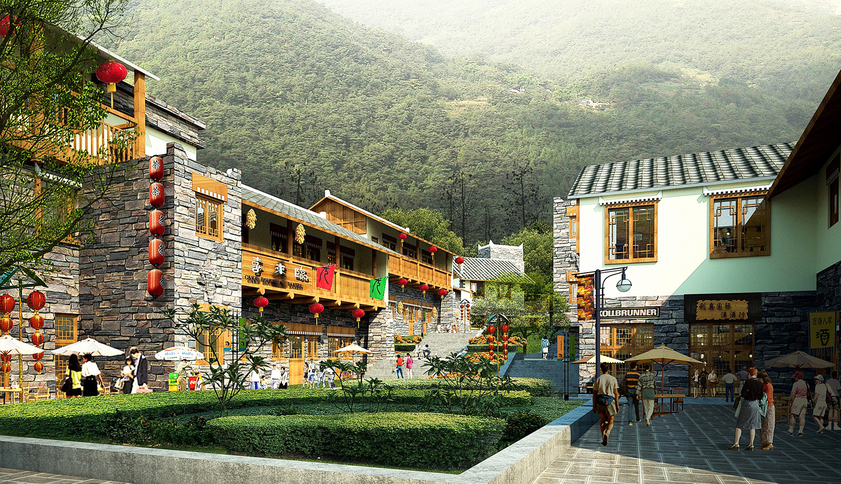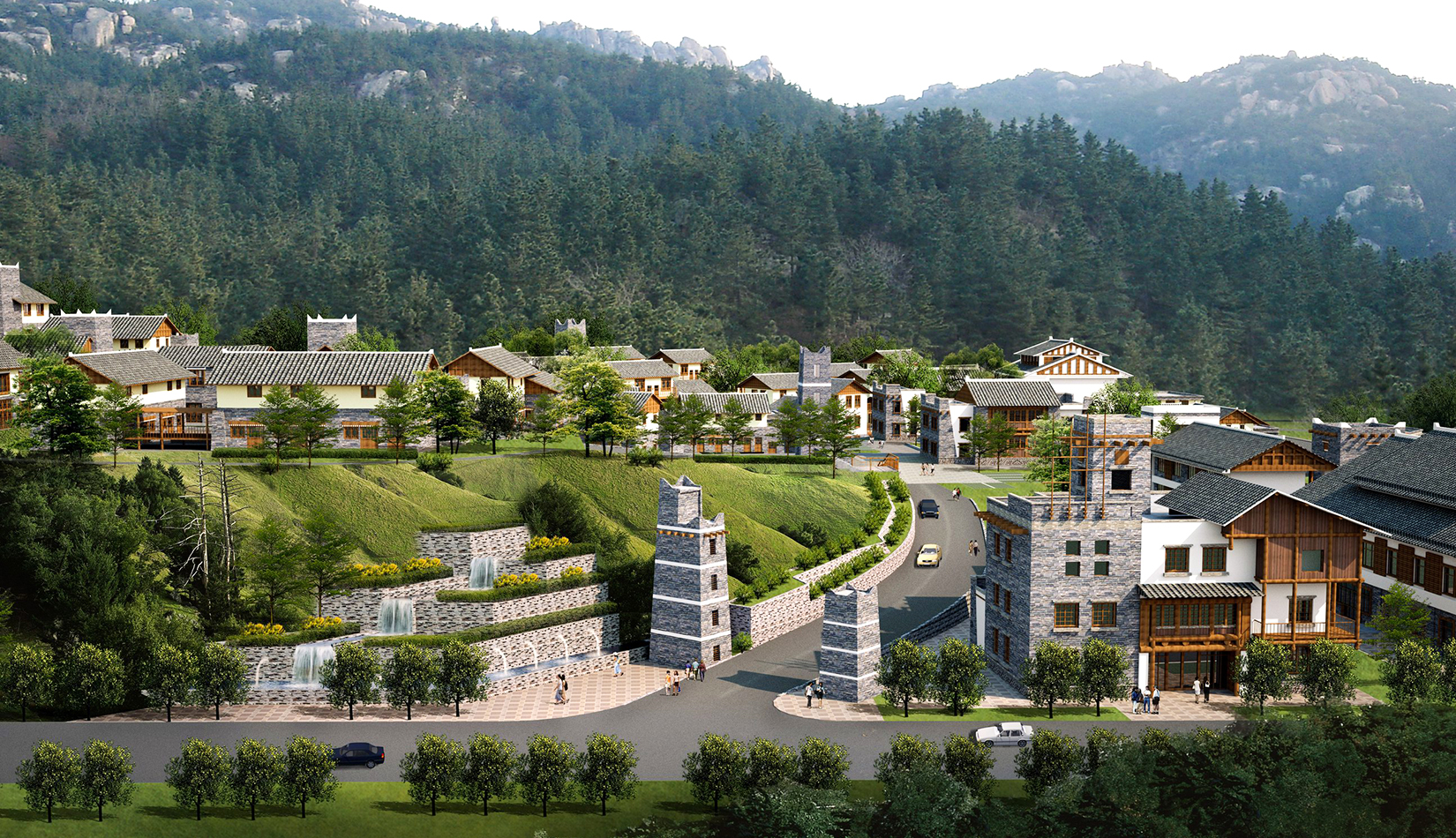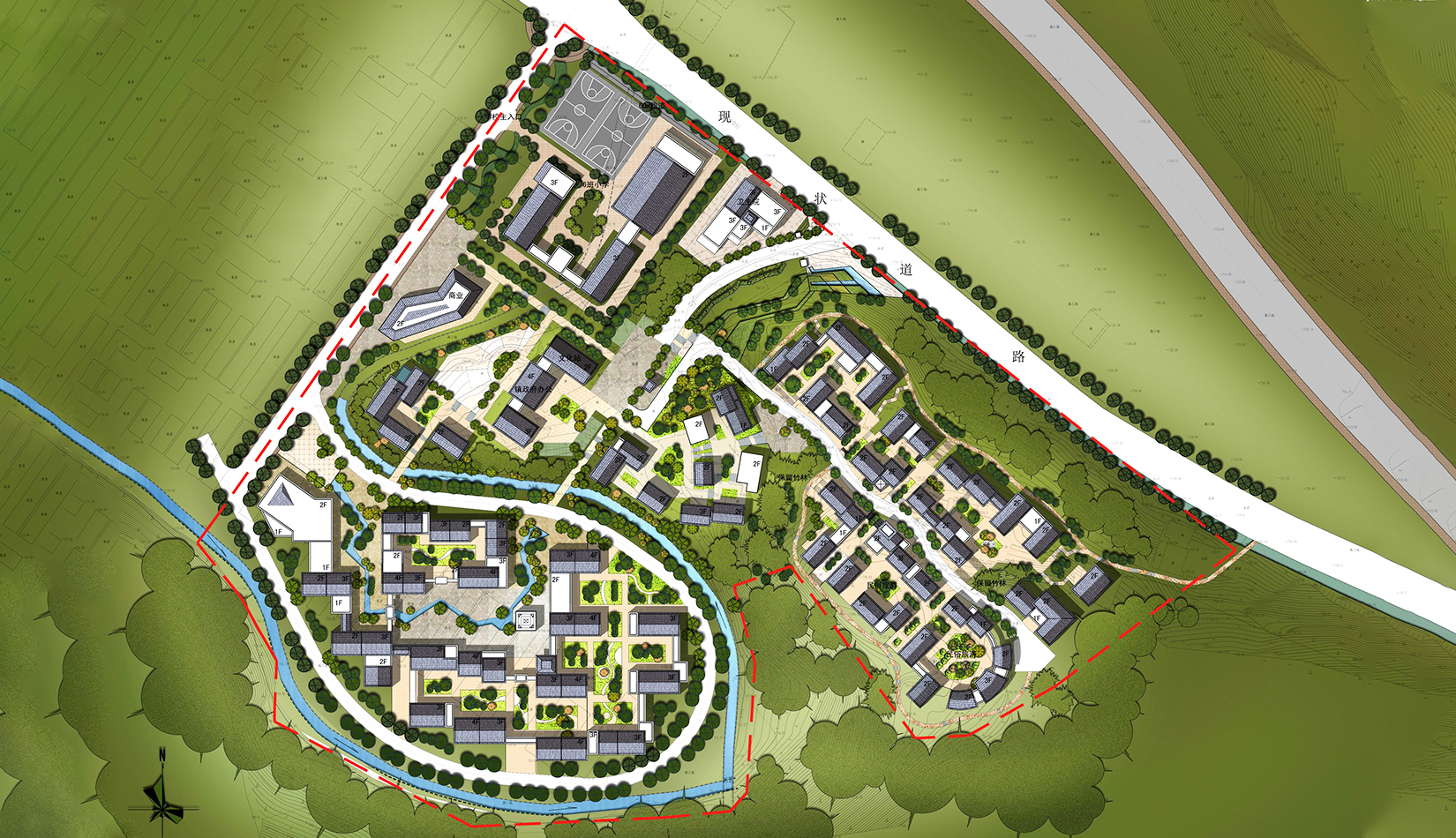 建筑布局依山就勢(shì),充分結(jié)合自然地形地貌,建筑體量與周邊環(huán)境和諧相融的生態(tài)型城鎮(zhèn);