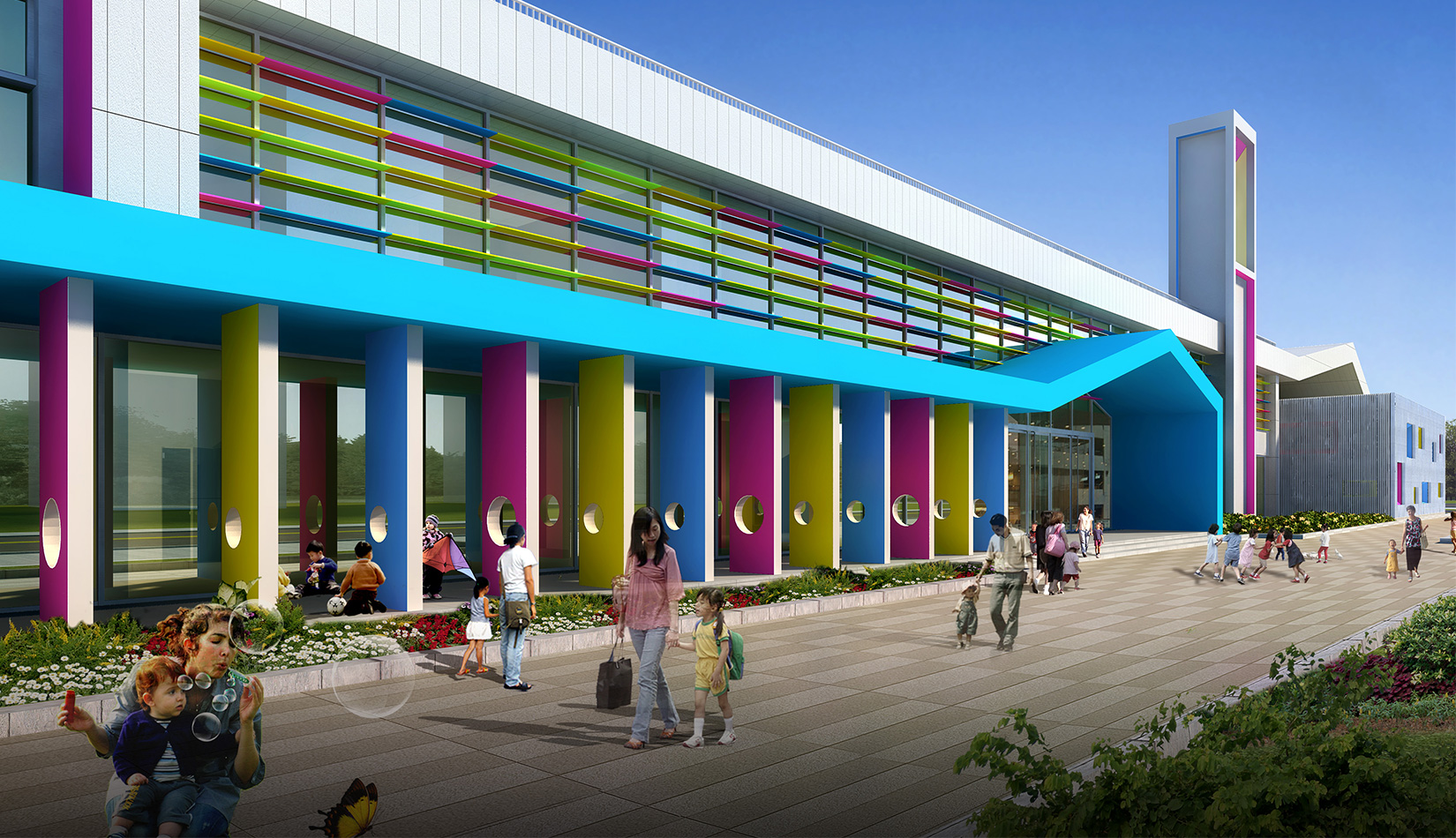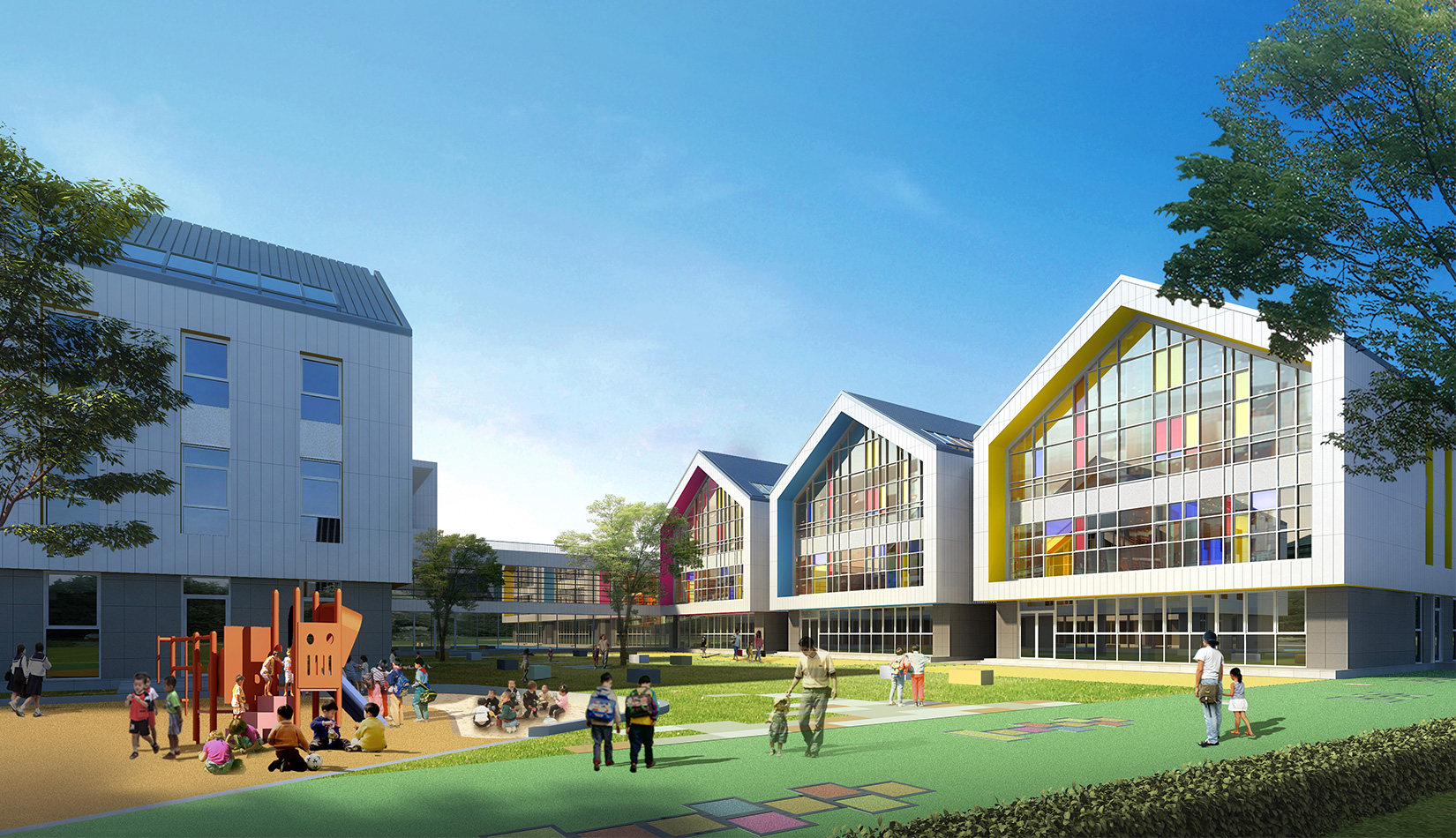 幼兒園作為兒童開始社交活動、培養(yǎng)社交能力的起始點,給孩子帶來的第一感受是陌生的、復雜的,而營造像“家”一樣自然舒適的環(huán)境有利于減少這樣的陌生感與距離感。本案設計中,通過將“坡屋頂小盒子”的家的形象代入幼兒單元的形象設計,來營造這樣一種氛圍,讓幼兒園成為孩子們的第二個家。