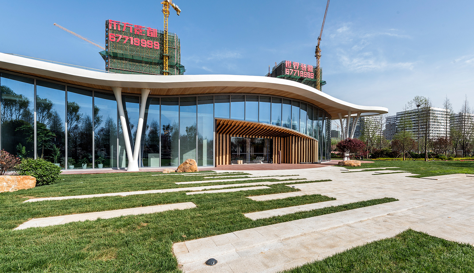 環(huán)保、生態(tài)的理念及手法貫穿于整個設(shè)計流程中,并通過有序的空間衍化,將建筑內(nèi)部的功能空間進行合理、系統(tǒng)的分隔,從而形成銷售、展覽、辦公等豐富的功能空間。
