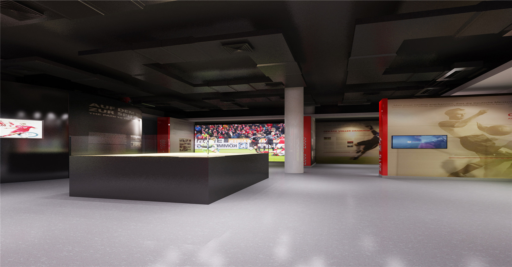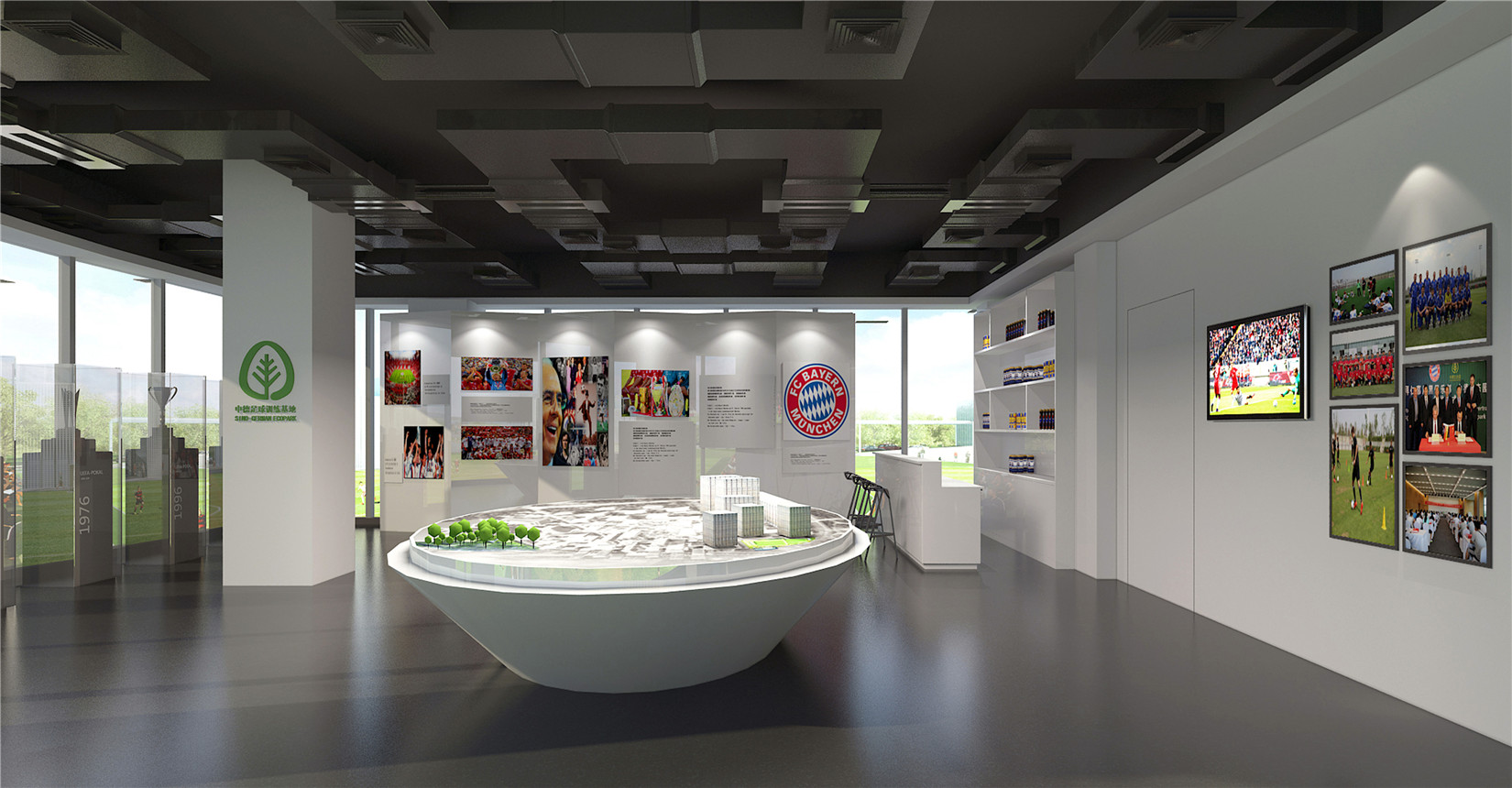本次設(shè)計(jì)方案運(yùn)用后現(xiàn)代主義風(fēng)格的設(shè)計(jì)手法來展現(xiàn)中德兩國足球運(yùn)動(dòng)的歷史及發(fā)展。迎合當(dāng)前環(huán)境下中德兩國在足球產(chǎn)業(yè)方面進(jìn)行的交流與合作,是中德體育促進(jìn)足球培訓(xùn)、商務(wù)推廣的窗口平臺(tái),向人們展示足球精神的人文內(nèi)涵與魅力。